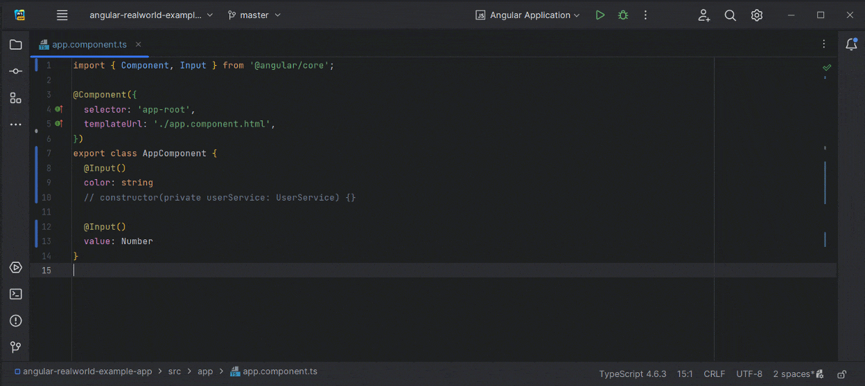 当你在Angular模板中工作时,WebStorm会在代码完成时自动为全局和导出的符号添加导入到你的组件。IDE还支持Angular 15 NgoptimizedImage指令,提供了一个检查,建议使用ngSrc而不是src的img。