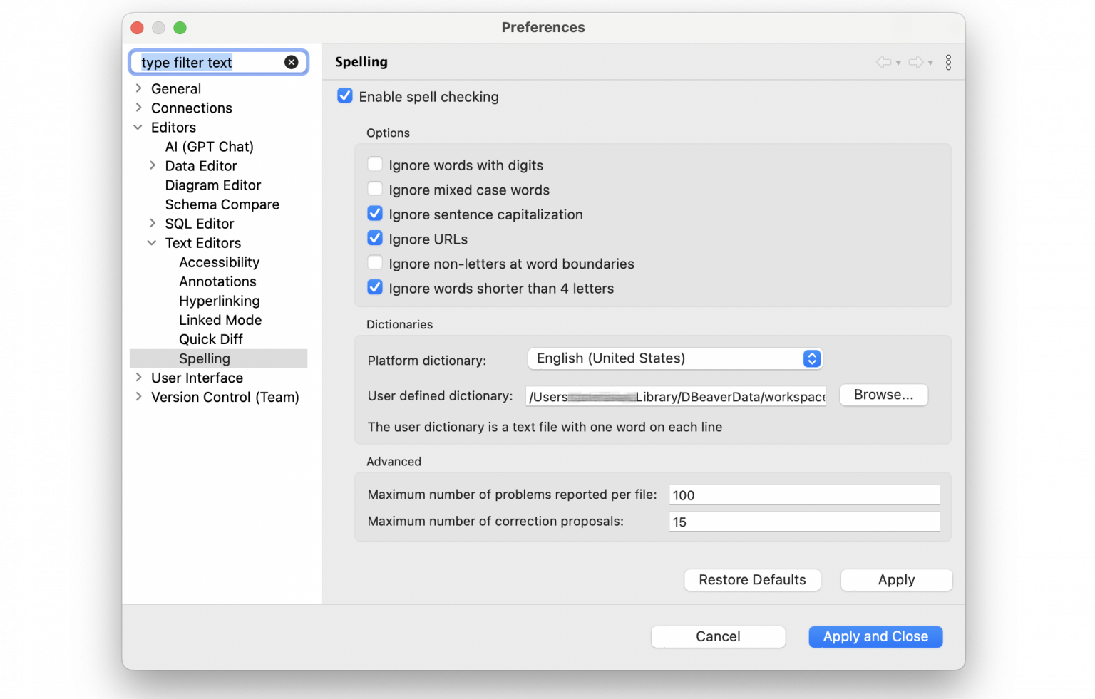 默认情况下启用拼写检查,但您可以在首选项的相应部分将其关闭。
