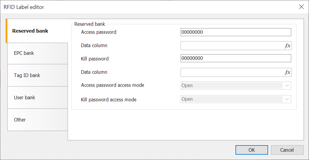 标签包含 4 个数据库:用于存储访问和销毁密码的保留库、电子产品代码库、标签标识符库和用户数据库。在 FastReport .NET 产品系列中,RFID 标签被表示为一个报告对象。标签可通过双击访问的用户友好型编辑器进行定制。