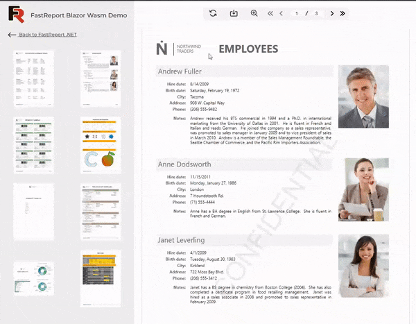以前,您只能使用我们的 FastReport.Blazor.Wasm 库查看在浏览器中打开的报告。本次更新增加了对导出的支持。现在,用户可以将生成的报告导出为各种格式,就像在普通 WebReport 中一样。
