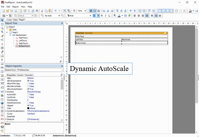 动态字体大小允许您控制应用于动态调整大小或拉伸对象的字体比例。报表引擎会缩小此类对象的内容,以适应当前页面上的带状区域。
