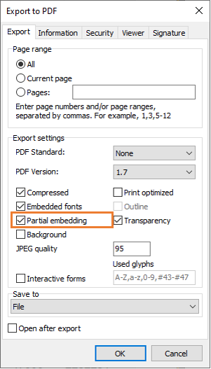 我们还在 PDF 导出中添加了部分字体嵌入功能。它允许您缩小 PDF 导出的大小。