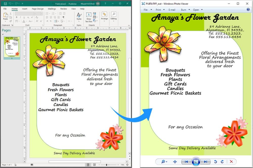 // Convert the PUB file to TIF image format