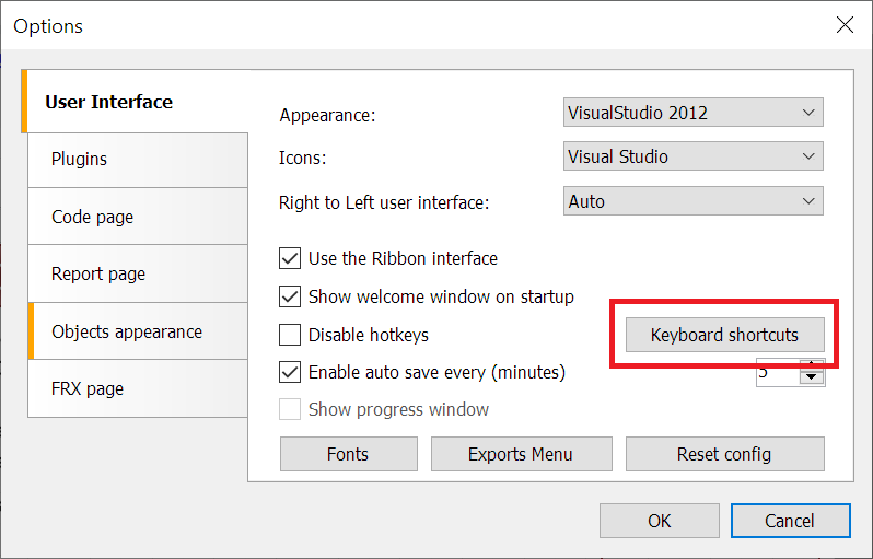 现在可以随意自定义热键组合。您可以为 "打开文件"、"保存文件"、"准备报告 "等操作配置命令。为此,设计器设置中的 "界面 "选项卡新增了一个按钮。