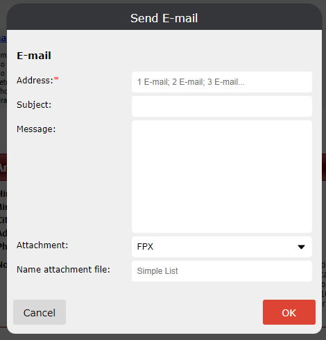点击 "邮件发送 "按钮后,用户将被要求通过一个便捷的模式窗口配置邮件: