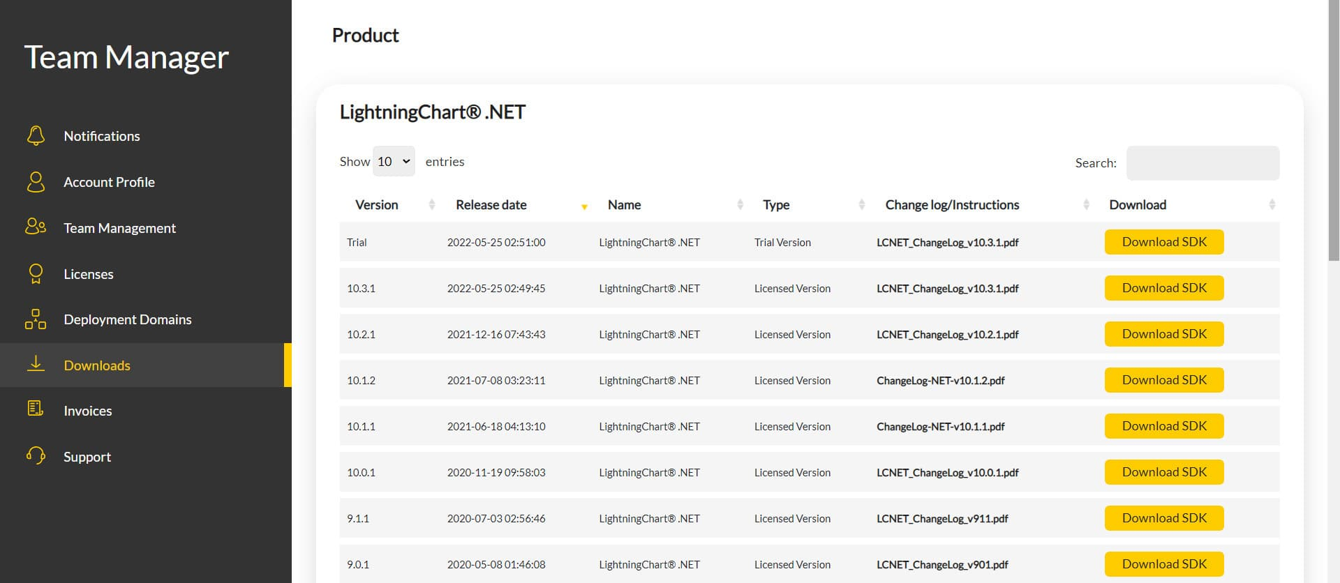 现在转到下一个 URL 并下载 LightningChart .NET。 然后,您将被重定向到登录表单,您必须在其中完成简单的注册过程。 完成注册过程后,您将可以访问您的 LightningChart 帐户。