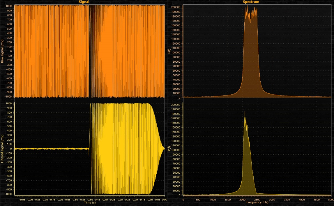 信号滤波器是编程滤波器,用于从采集的信号数据中滤除不需要的频率。 通过这些控制,我们将能够操纵幅度、频率范围、持续时间和频谱长度。