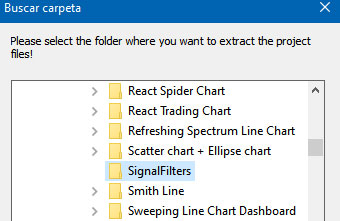 现在让我们使用 Visual Studio。 使用 LightningChart 可视化工具和 Visual Studio 之间的主要区别在于,我们将能够分析和试验源代码中的许多功能。 在 LC 可视化工具中,选择数字信号处理滤波器应用程序并运行示例: