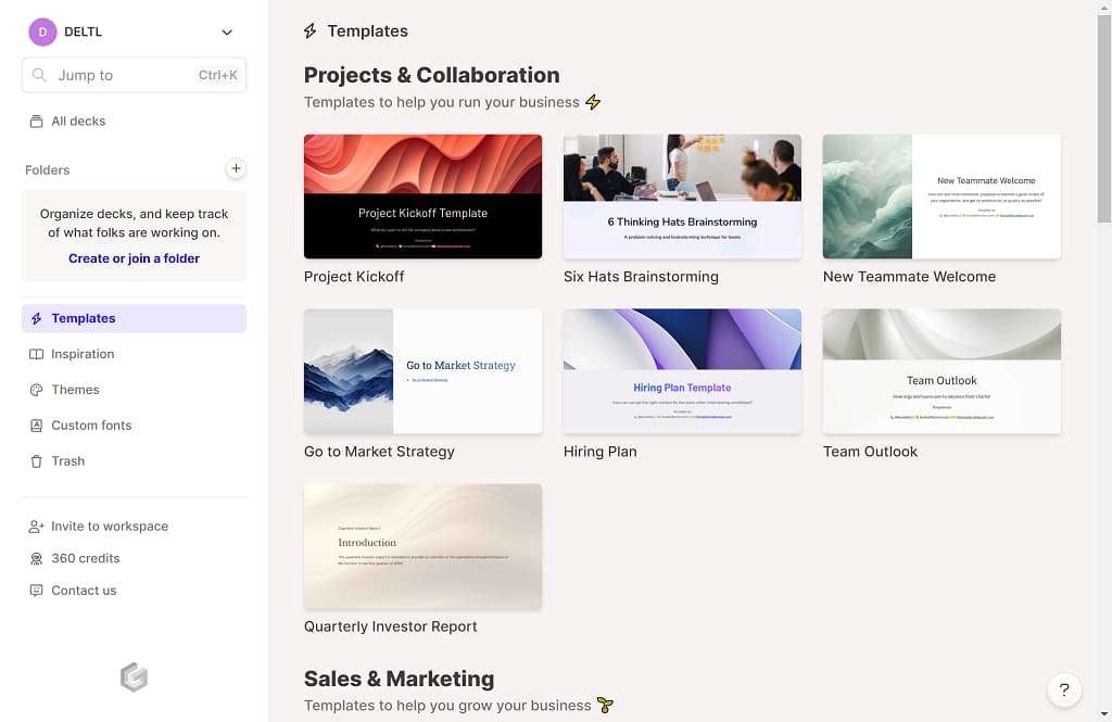 Gamma 是另一款可为你制作演示文稿的 AI 演示文稿制作工具。