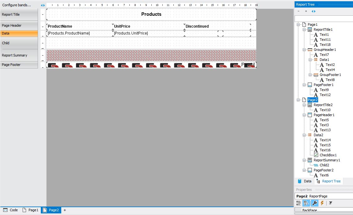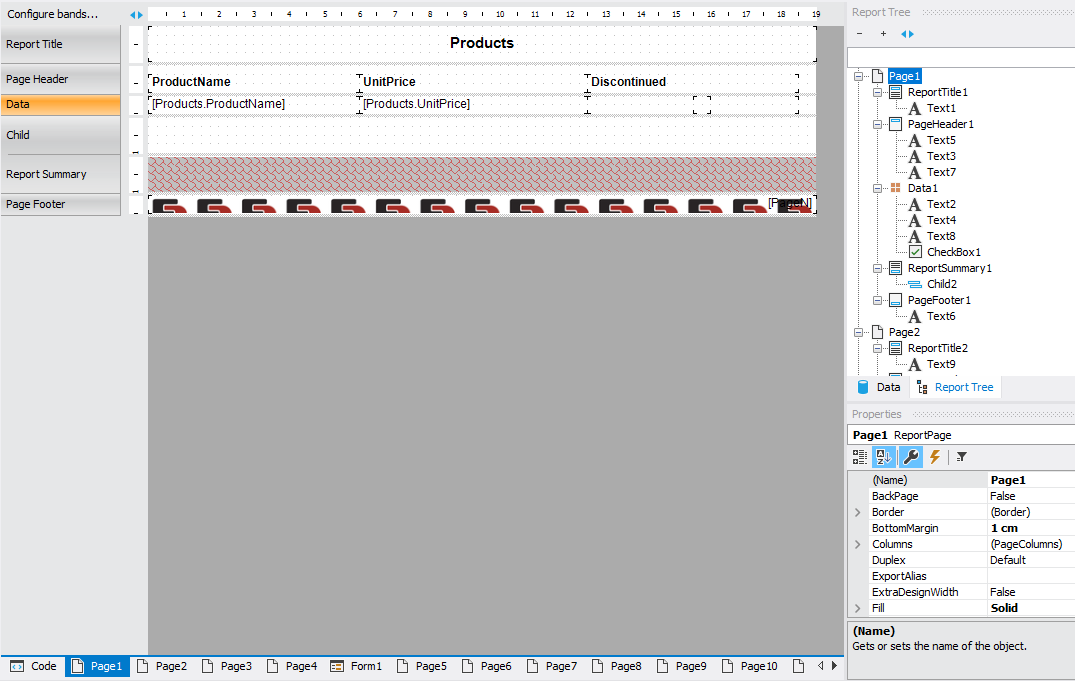 举个明显的例子,我们在主报告中添加 Page1。这就是它在原始报表中的样子。