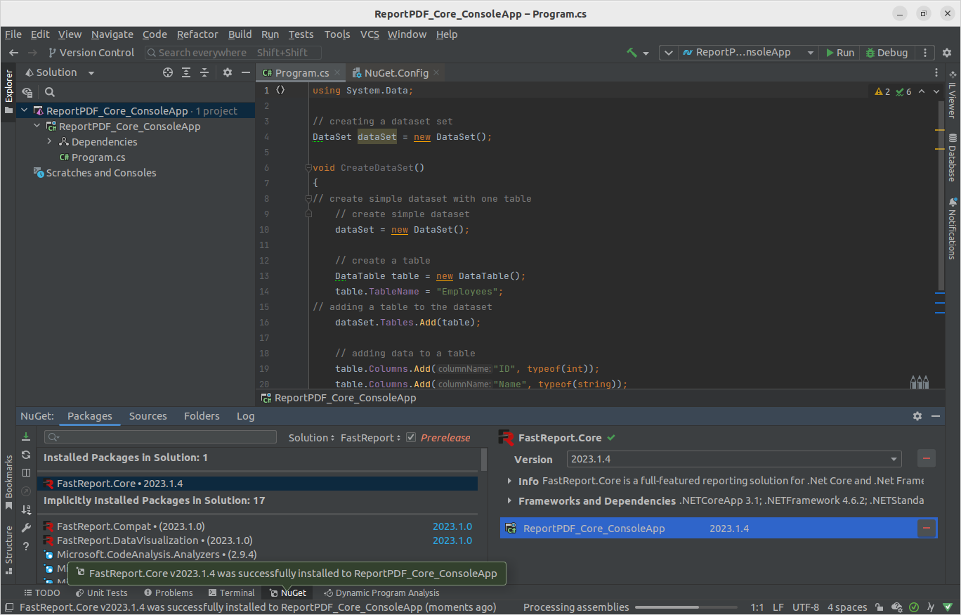 在本文中,我们讨论了 JetBrains Rider (C#) + .NET Core + Console Application + FastReport .NET Core + Linux (Ubuntu 22.04.1 LTS) 的绑定,并从 PDF 数据集生成了一份报告。当然,我们还确保.NET平台可以在没有Microsoft Visual Studio的情况下轻松使用,因为Linux根本就没有Visual Studio。