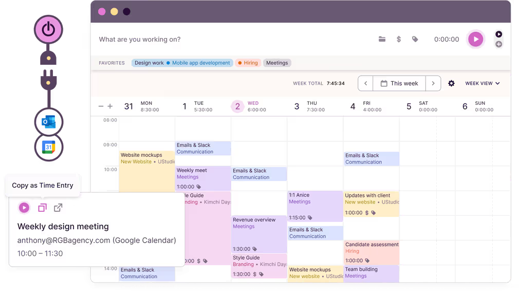 Toggl Track 是一款时间跟踪应用程序,它通过网站提供在线时间跟踪和报告功能,并可通过手机和桌面应用程序访问。这款工具可以帮助您保持高效率,因为它会计算您在某个项目或任务上花费的每一分钟,让您最大限度地减少分心。Toogl Track 采用日历格式,因此可以轻松与 Outlook 和谷歌日历整合。另一个有用的功能是可以在计时器模式和手动模式之间切换。这就意味着你可以边走边追踪时间,也可以稍后再添加时间。