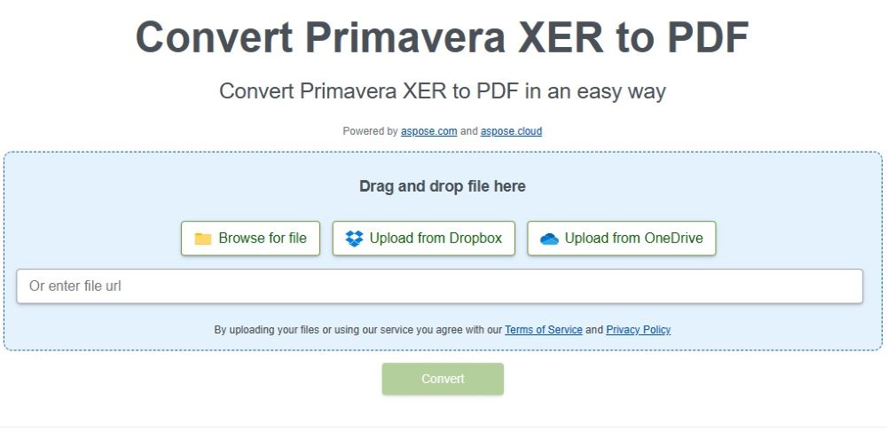您还可以使用使用上述 API 开发的免费 XER 到 PDF 转换器在线工具,将 XER 文件转换为 PDF 格式。