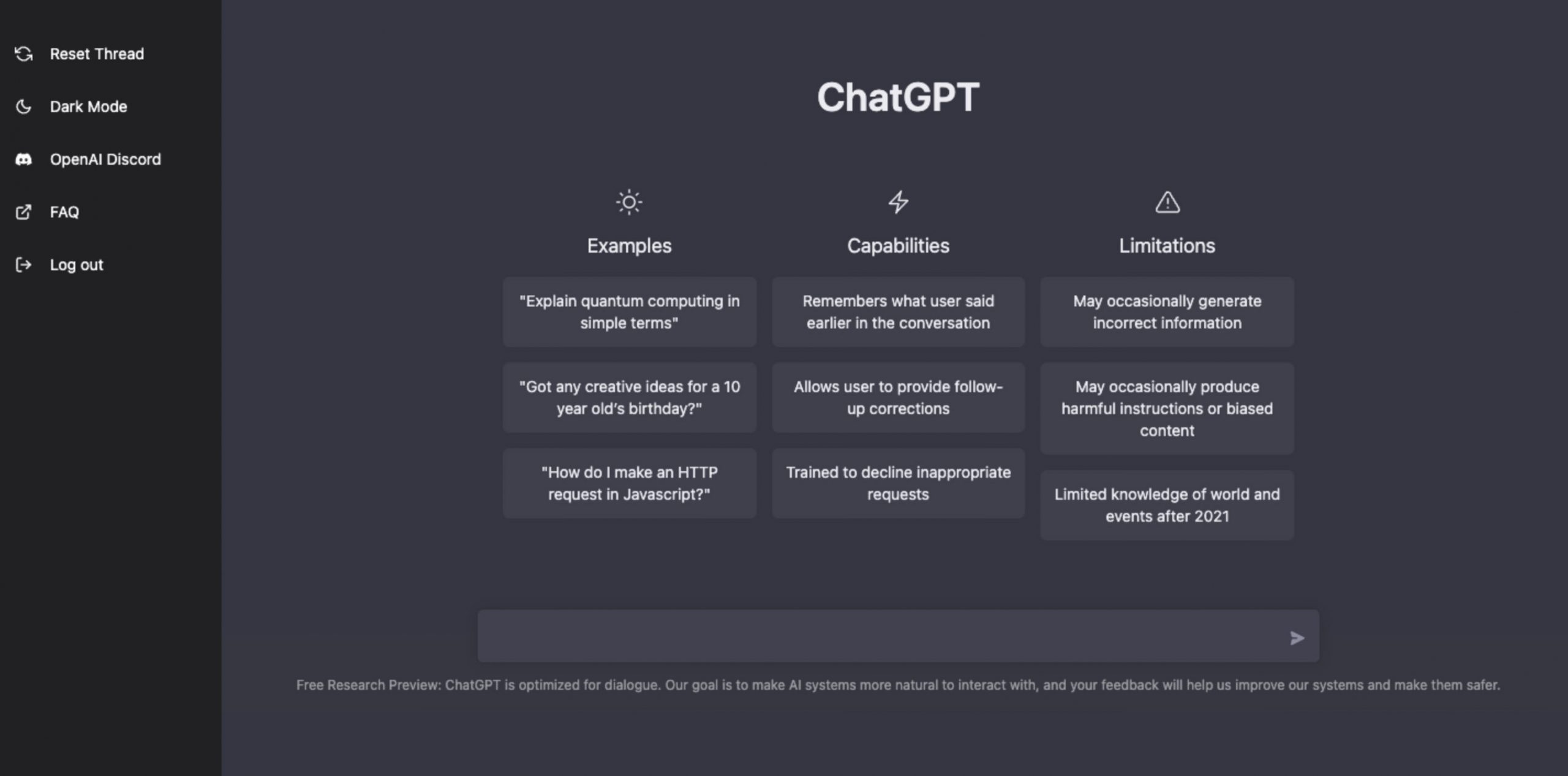 OpenAI 的 ChatGPT 于 2022 年推出,现已风靡互联网。它是人工智能写作最快的工具之一。只需一个请求,它就能在几秒钟内生成内容或回答你的问题。ChatGPT 在生成内容以帮助研究方面有着非凡的能力。