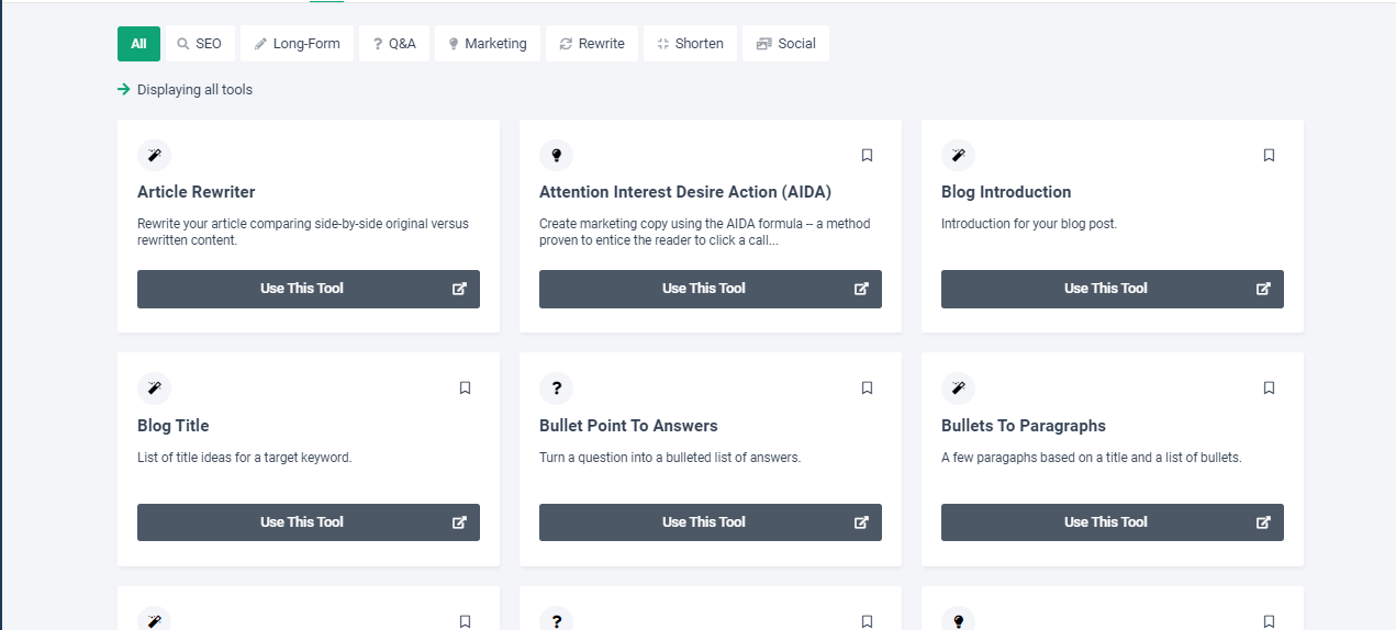 如果你与多个团队成员一起工作,这款人工智能内容撰写工具尤其是个不错的选择。它具有共享可编辑链接和创建项目文件夹等协作功能。