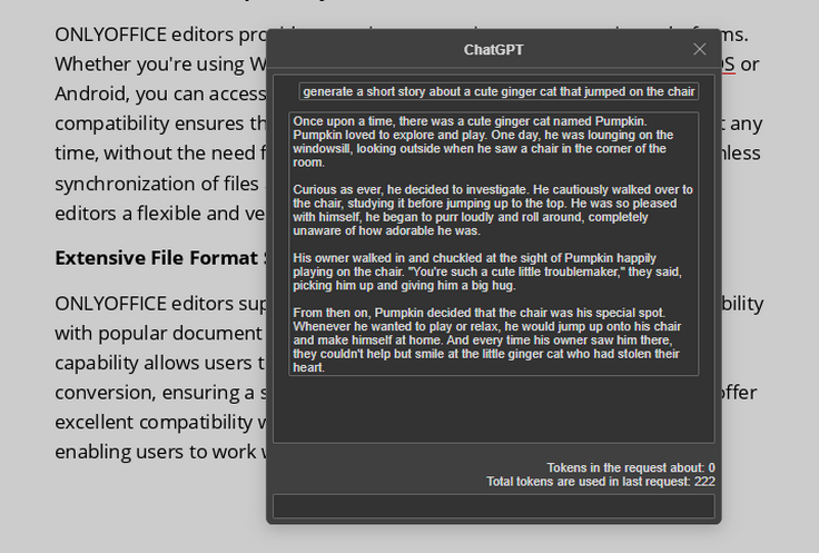 让我们以 ONLYOFFICE 的 ChatGPT 插件为例,来看看这种集成。