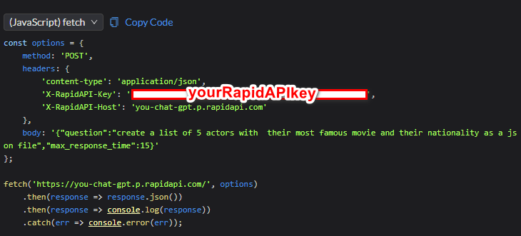 fetch('https://you-chat-gpt.p.rapidapi.com/', options)