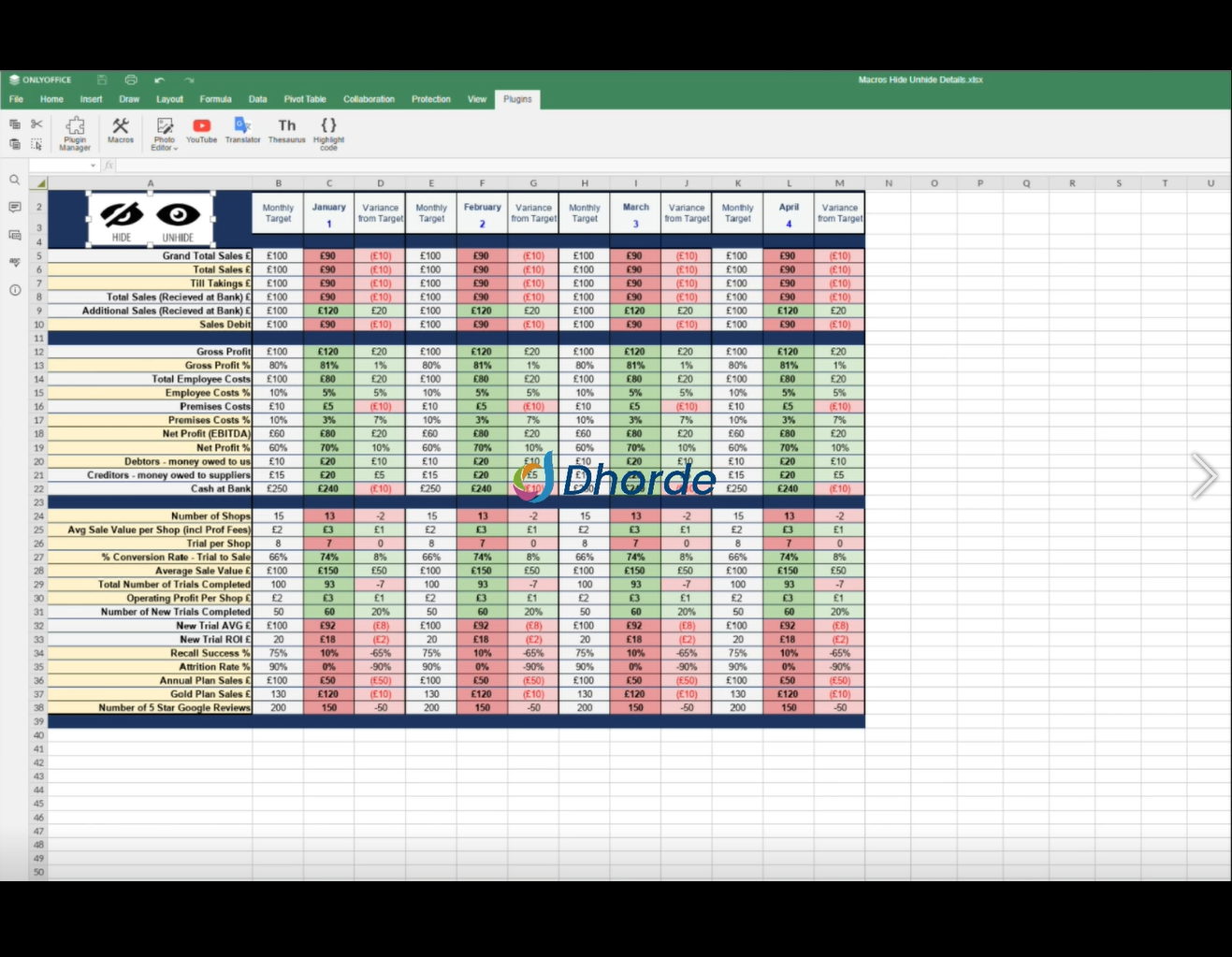 管理大型数据集非常耗时。这正是 ONLYOFFICE 宏的优势所在,它可以自动执行任务并释放电子表格的潜能。在本文中,我们将向您展示如何创建一个用户友好型宏,用于隐藏或取消隐藏特定行和列。此外,我们的文档中的宏示例部分也有一个类似的宏,但在这个宏中,我们将把它提升一个档次,使其更加方便用户使用。