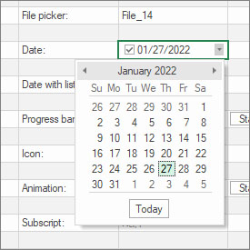 CBCGPGridDateTimeItem:添加了 CBCGPDateTimeCtrl::DTM_CHECKBOX 标志支持。 可以使用可选复选框创建网格日期/时间单元格(参见屏幕截图)。 虽然数据/时间选择器处于未选中状态,但 CBCGPGridDateTimeItem 显示空值标签。 请在 CBCGPGridDateTimeItem 的构造函数中查看一个新的可选参数 (LPCTSTR lpszNoDateLabel)。 CBCGPGridDateTimeItem 类中添加了以下新成员:m_bIsChecked、m_strNoDateLabel。