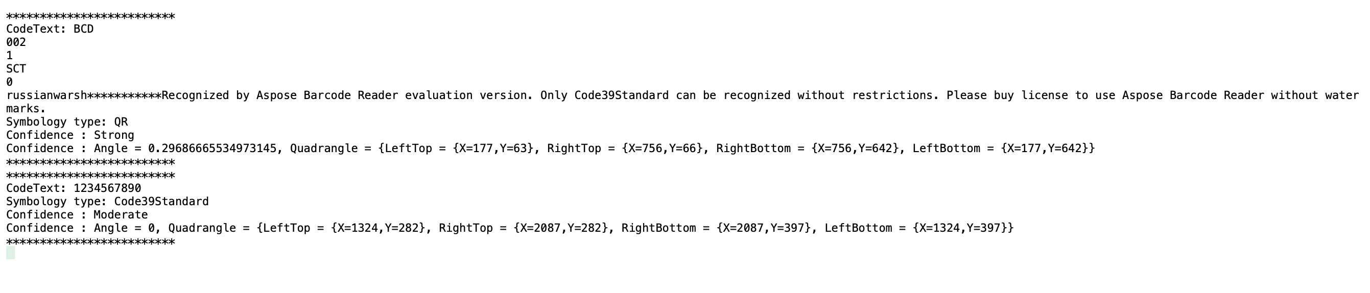 // The Confidence property is used to get the recognition confidence level of the recognized barcode.