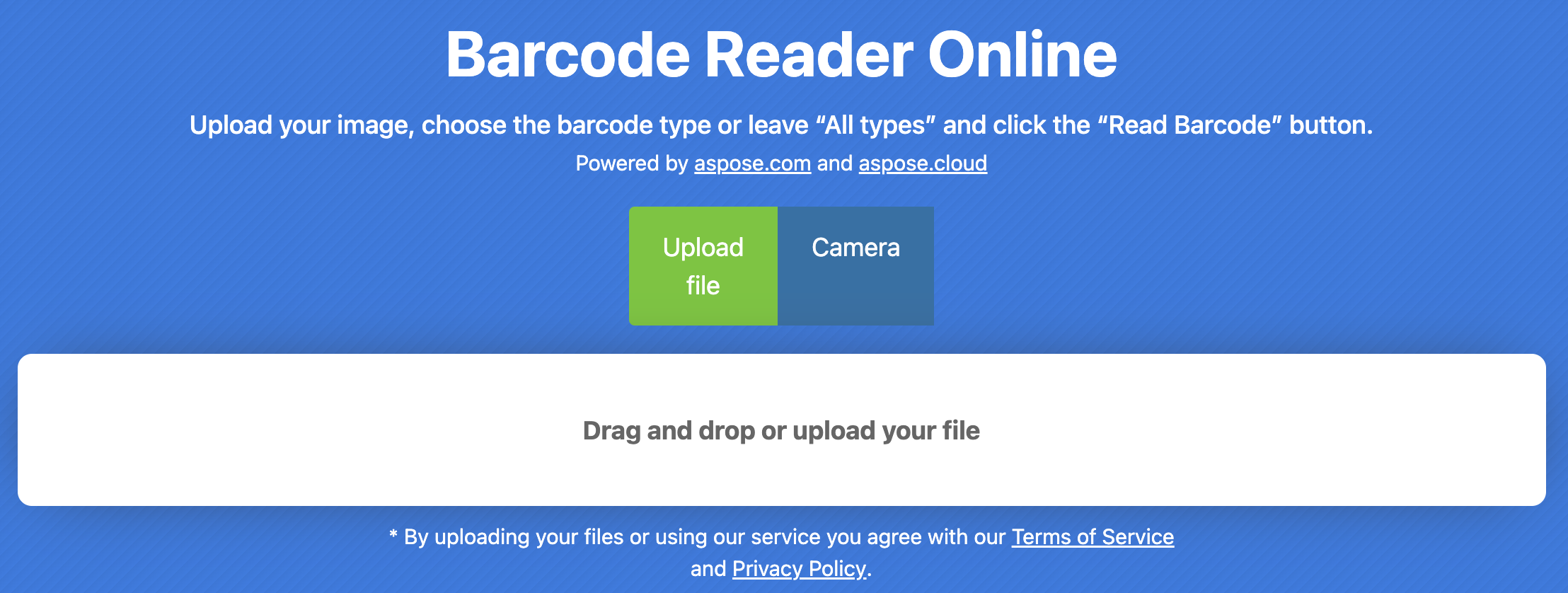 我们隆重推出此在线工具,使我们的用户能够在线使用此条码扫描器。幸运的是,此在线条码阅读器由 Aspose.BarCode 提供支持,并提供企业级用户体验。最重要的是,您无需创建账户即可使用该工具。此外,它还提供丰富的用户界面,用户可以轻松拖放文件。