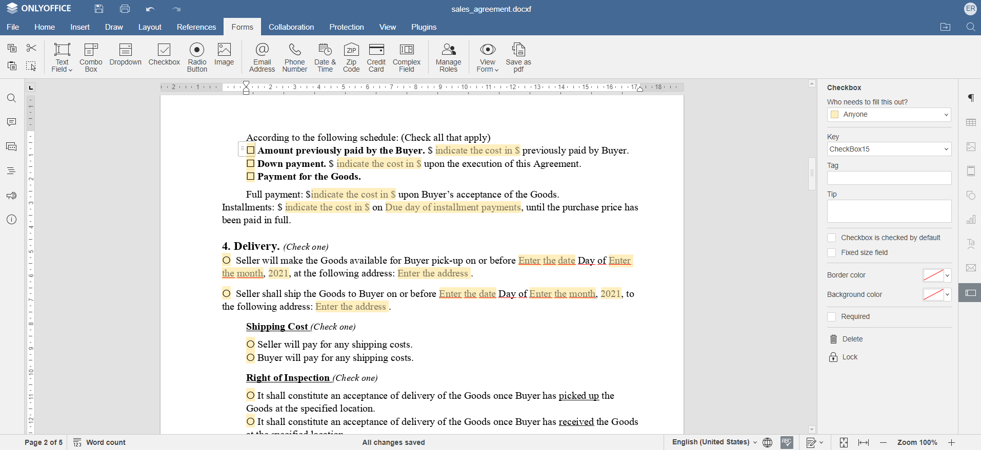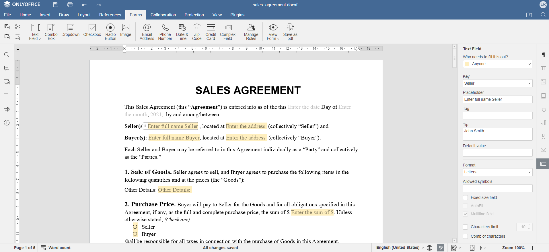 今天,我们将以销售协议为例,了解什么是 ONLYOFFICE 表单,以及如何创建标准的可填写表格。
