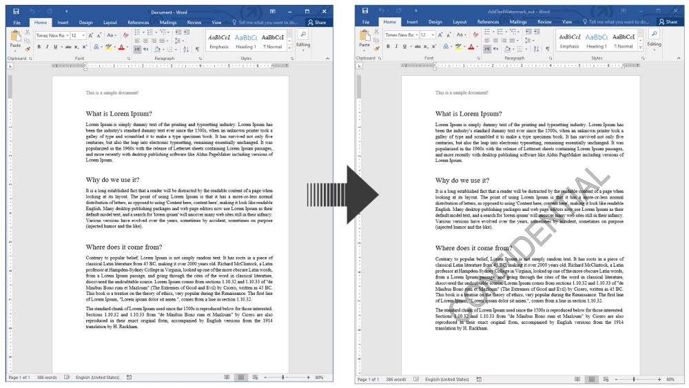 Word 文档中的水印是出现在文档主体上的半透明图像或文本。MS Word 允许根据需要添加公司徽标等图像或 "机密 "或 "草稿 "等文本作为水印。在 Word 文档中添加水印是保护知识产权或品牌标识的常见做法。在某些情况下,我们可能需要在 Python 中为 Word 文档 (DOC 或 DOCX) 添加水印。在本文中,我们将探讨如何使用 Python 在 Word 文档中插入水印。