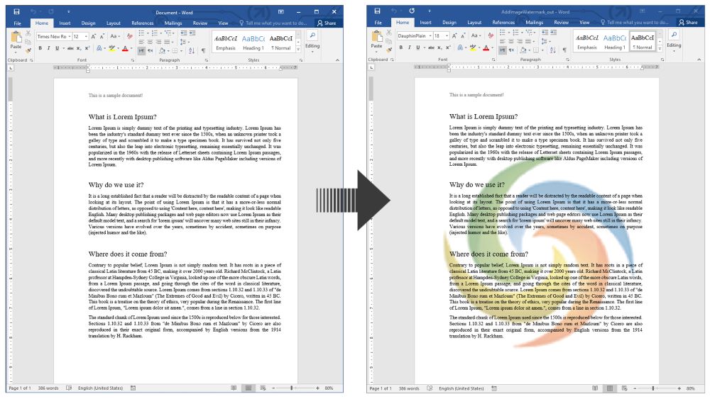同样,我们也可以按照以下步骤在 Word 文档中插入图像作为水印: