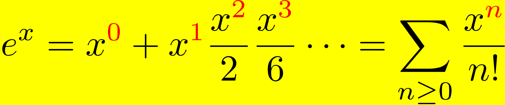 + "\\frac{x^{\\color{red}n}}{n!}\r\n"