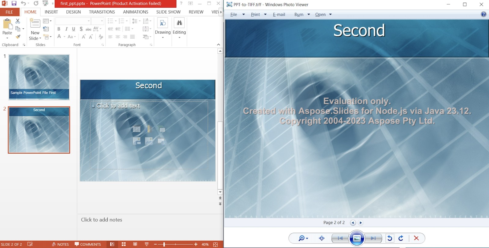 Aspose.Slides for Node.js via Java 正在持续开发并发布转换和处理 MS PowerPoint 文件的新功能。本文将介绍如何在 Node.js 中将 PowerPoint 幻灯片转换为图像。我们将安装这个功能丰富的 Node.js PowerPoint API,以编程方式将 PPT 转换为 TIFF。现在,您将能够为您的商业软件开发一个 PowerPoint 到 TIFF 的转换器。那么,让我们继续在 Node.js 中将 PowerPoint 转换为高分辨率 TIFF。