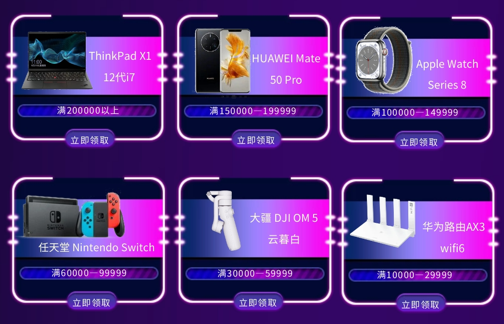ThinkPad笔记本电脑、华为Mate 50 Pro、Apple Watch......惊喜好礼购买即享!