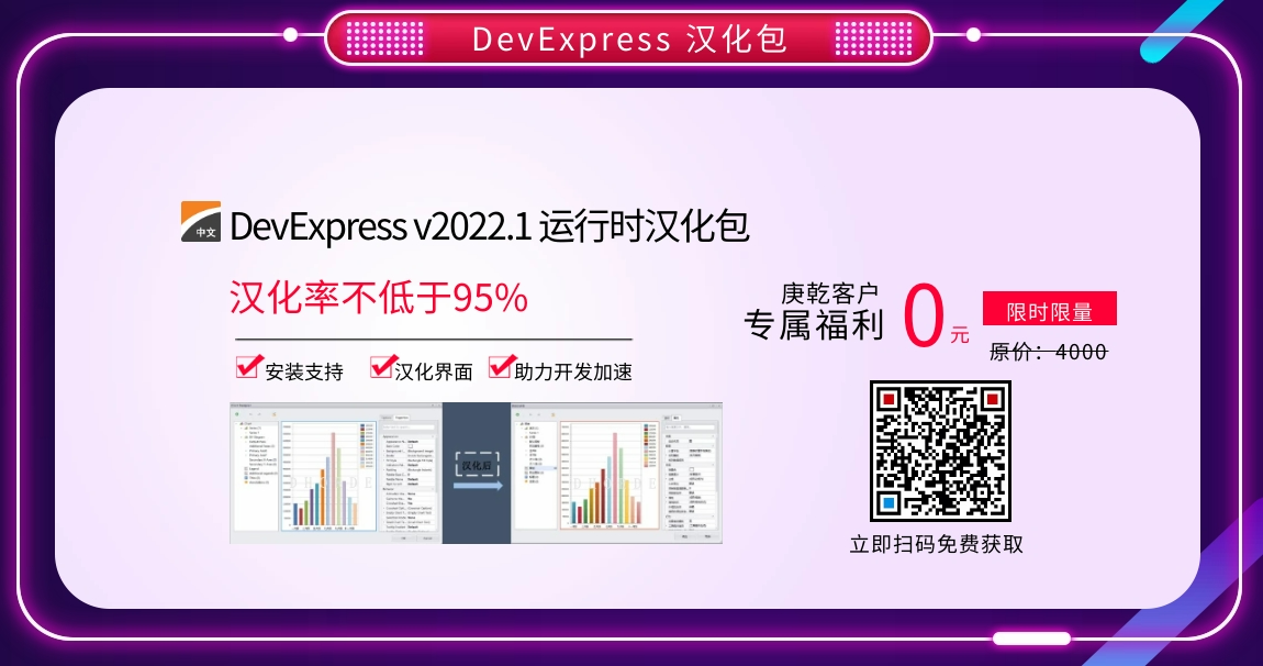 原售价4000元的 DevExpress v2022.1 运行时汉化包限时限量免费领取!