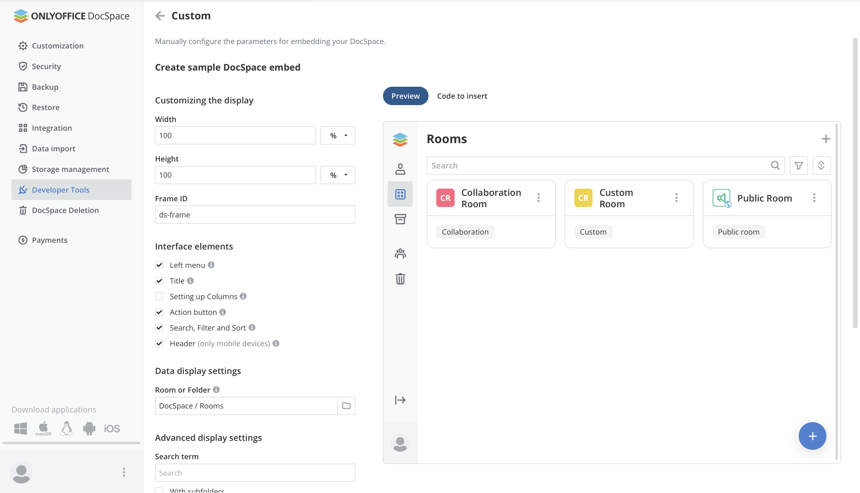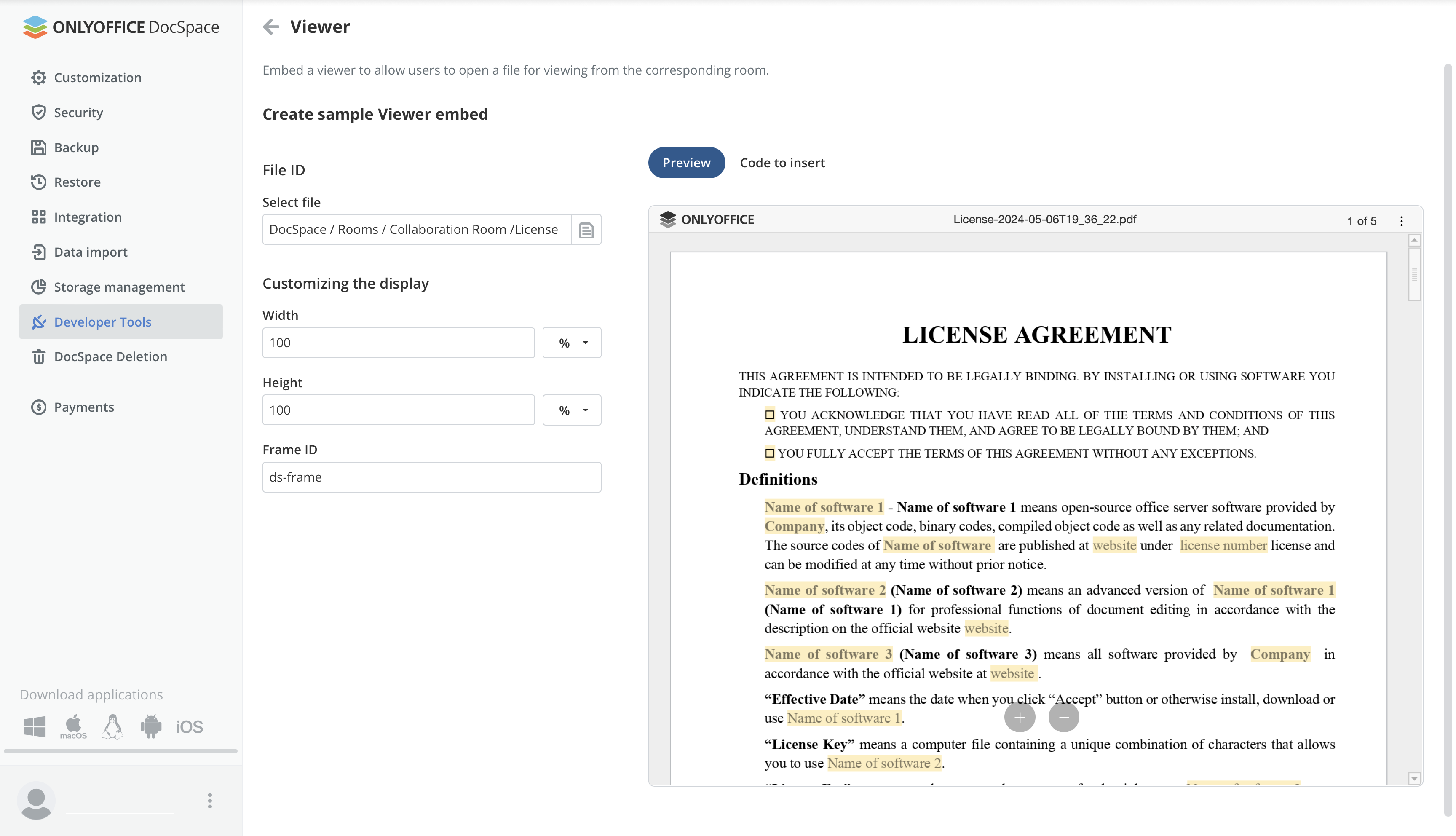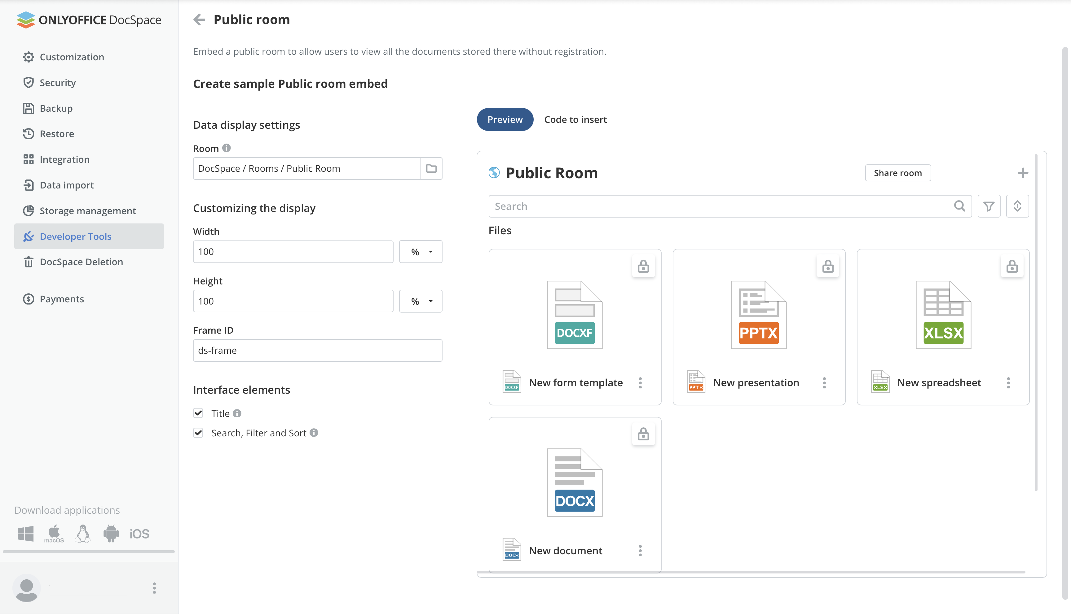 在 ONLYOFFICE DocSpace 中嵌入预设值