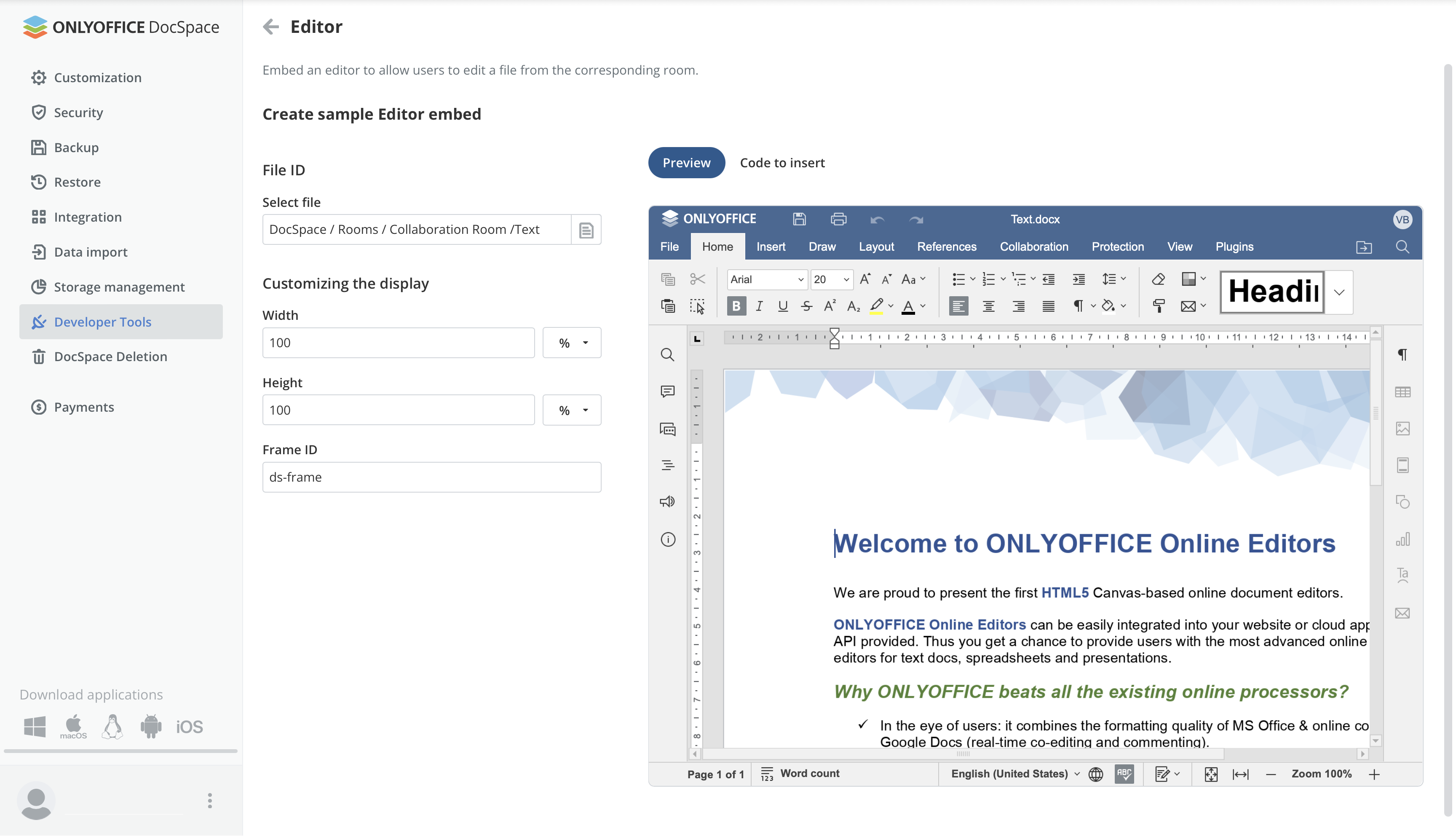 计划在其网络服务中实现办公文档协作的开发人员出于以下原因考虑使用 DocSpace。