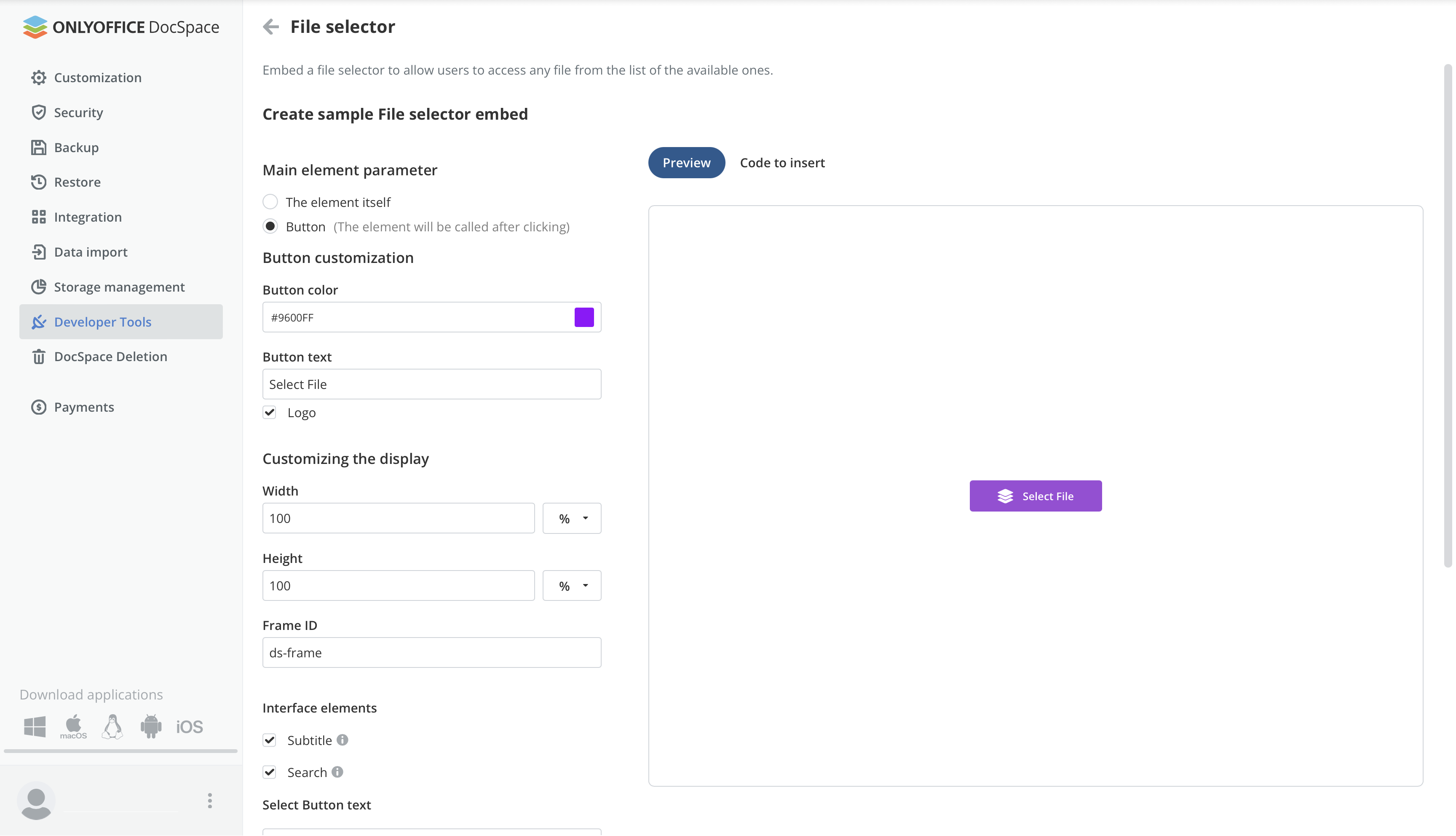 我们提供配置好的预设,使嵌入DocSpace变得简单灵活--无需特殊的编码知识。以下是您可以整合到网页中的内容: