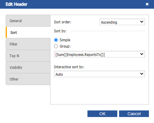 改进了高级矩阵对象。现在,矩阵报表的交互性更强了。要对字段进行排序,需要调用标题单元格的上下文菜单并选择相应的项目: