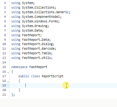 在 FastReport Online Designer 的最新更新中,我们大大改进了 C# 代码的工作。现在,由于引入了 Intellisense 功能,在报告编辑器中编辑脚本变得更加方便和直观。Intellisense 提供自动代码自动补全和语法提示,让用户可以在网页界面上更快更准确地编写代码。这大大简化了开发过程,使 FastReport Online Designer 成为您业务中更强大的工具。