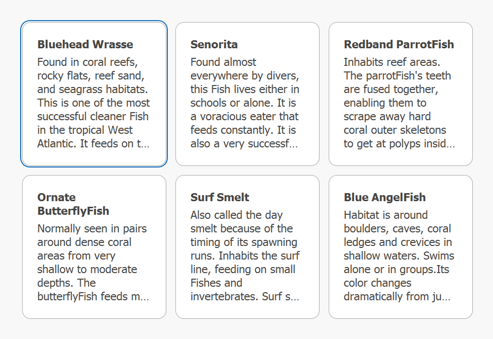 在 DevExpress CardView 中浏览卡片字段。