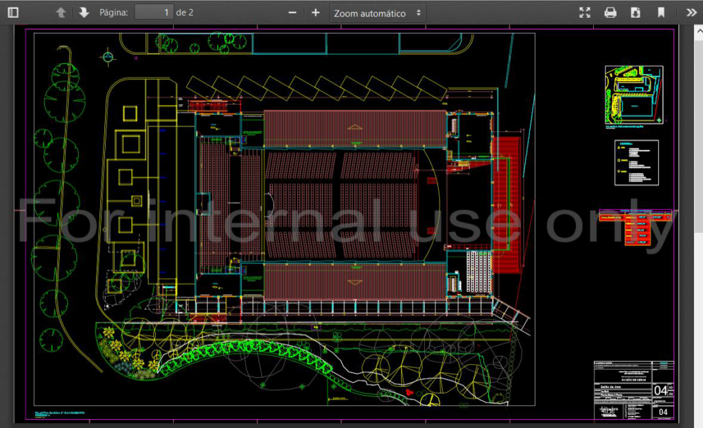 Aspose 能够将 CAD 和 Office 文档转换为 PDF,而且能够轻松编辑这些 PDF 文件,这正是我们选择该产品的原因。 例如,当用户上传或创建新版本的 CAD 文件时,我们使用 Aspose.CAD for .NET 将 CAD 文件转换为 PDF,然后使用 Aspose.PDF for .NET 添加所需的水印。 结果是一个新的文件,可以直接通过浏览器查看,也可以打印,不仅可以查看和打印文件,还可以限制对原始 CAD 文件的访问。 Aspose.CAD for .NET 还允许我们创建黑色背景的 PDF 文件,以便工程用户更方便地查看,如下图所示。