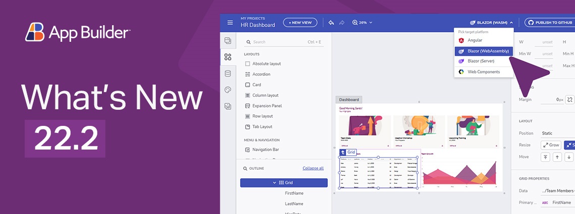 很高兴地宣布,今天我们将通过最新的 Ignite UI 22.2 版本发布大量 UI/UX 升级。扩展您最喜欢的 UI 库,我们现在添加更多组件和功能、更好的控件、跨 Blazor、Angular 和 Web 组件的全新数据网格、改进的 App Builder 代码生成功能、™ Figma 设计工具支持等等.