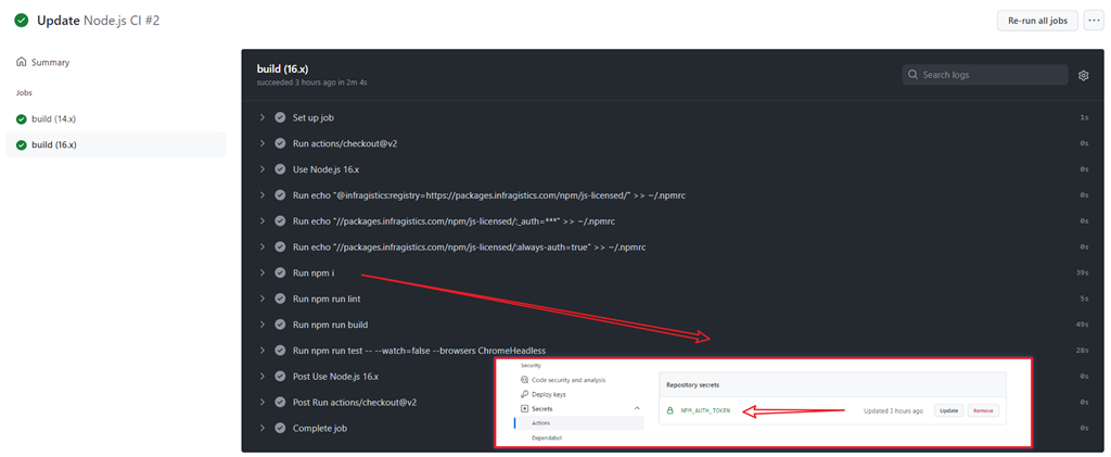 当应用程序发布到 GitHub 时,我们会添加一个 CI,它将构建您的项目并运行基本测试。我们还发布了 GitHub CI 所需的 NPM_AUTH_TOKEN,以便能够使用许可包。