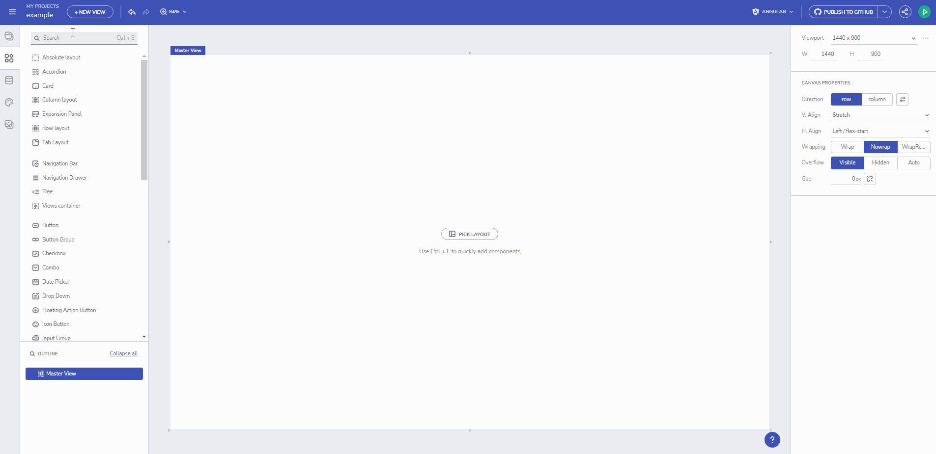 Ignite UI 扩展面板是一个轻量级的手风琴组件,可以在两种状态下呈现——折叠或展开。可以使用鼠标单击或键盘交互来切换扩展面板。官方扩展面板文档。您可以在此处的 App Builder 中测试扩展面板组件 - https://appbuilder.indigo.design/app/57rzzu3jaybd/preview