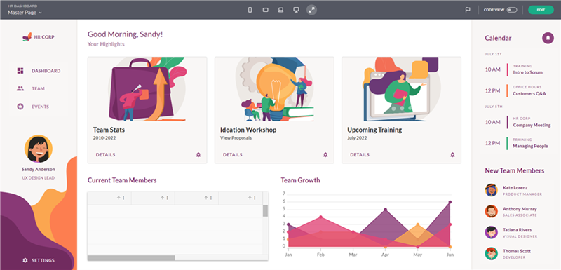 添加了一个新的示例应用程序,其中包括网格和图表组件。该应用程序还展示了其他组件的用法,如列表、卡片、对话框和漂亮的布局。您可以在此处的 App Builder 中测试 HR Dashboard 示例 - https://appbuilder.indigo.design/app/yplynzm54zwz/preview