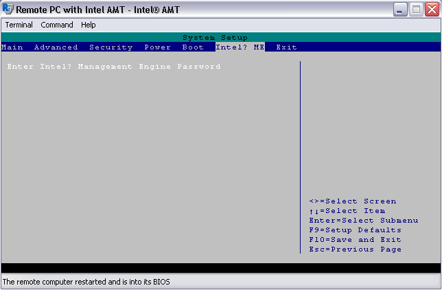 我们从 Bios 设置开始。 启动系统时,进入英特尔® AMT 可管理性引擎(Intel® AMT ME)设置(OEM 厂商的设置方法各不相同。 对于某些 OEM 厂商,开机时会有一条信息提示进入 MEBx 设置;对于其他 OEM 厂商,开机时按 F2(或 Del)键将进入 Bios 设置,其中有一个单独的 "英特尔® AMT ME "选项卡)。 在 Bios 设置中执行以下步骤:
