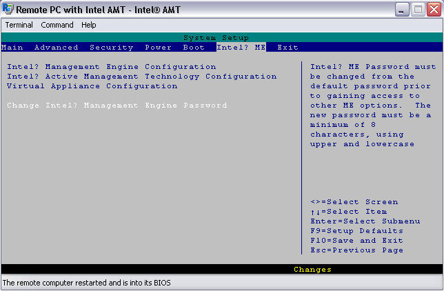 更改默认的英特尔® AMT ME 密码: