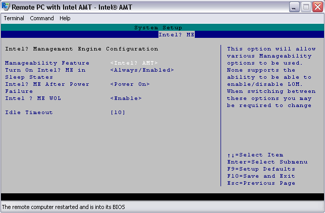 英特尔® AMT 管理引擎的配置: