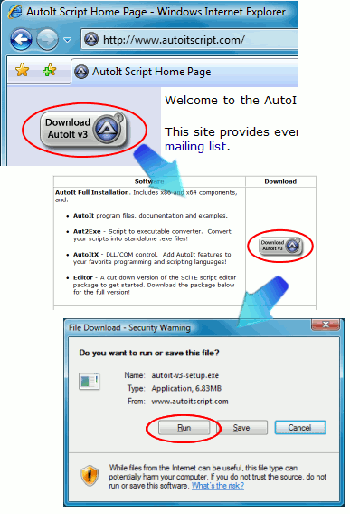 1. 如图所示,从 www.autoitscript.com 下载并安装 AutoIt v3:
