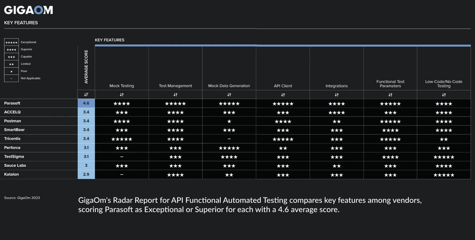 该公司被公认为关键功能的领导者,在模拟测试、测试管理、API 客户端支持、集成和低代码/无代码测试等关键功能方面获得了 4.6 分(满分 5 分)的高分。