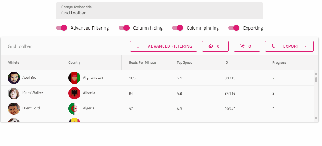 现在 Ignite UI for Angular 组件使用的部分或全部图标都可以用非材质图标集代替。通过 Ignite UI 图标服务,开发人员可以轻松添加自定义 SVG 图像并将其用于 IgxIconComponent。 此外,它还可用于关联自定义类,以便根据给定的字体家族应用于 IgxIconComponent。