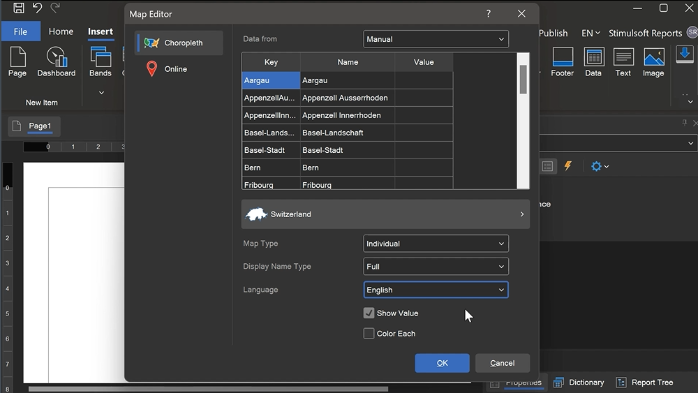 在仪表盘的地区地图组件中,现在可以在手动数据输入模式下选择中国、韩国、日本、瑞士、加拿大、墨西哥、荷兰、挪威和波兰地图段的本地化。 地图片段的本地化由组件编辑器中的语言参数决定。
